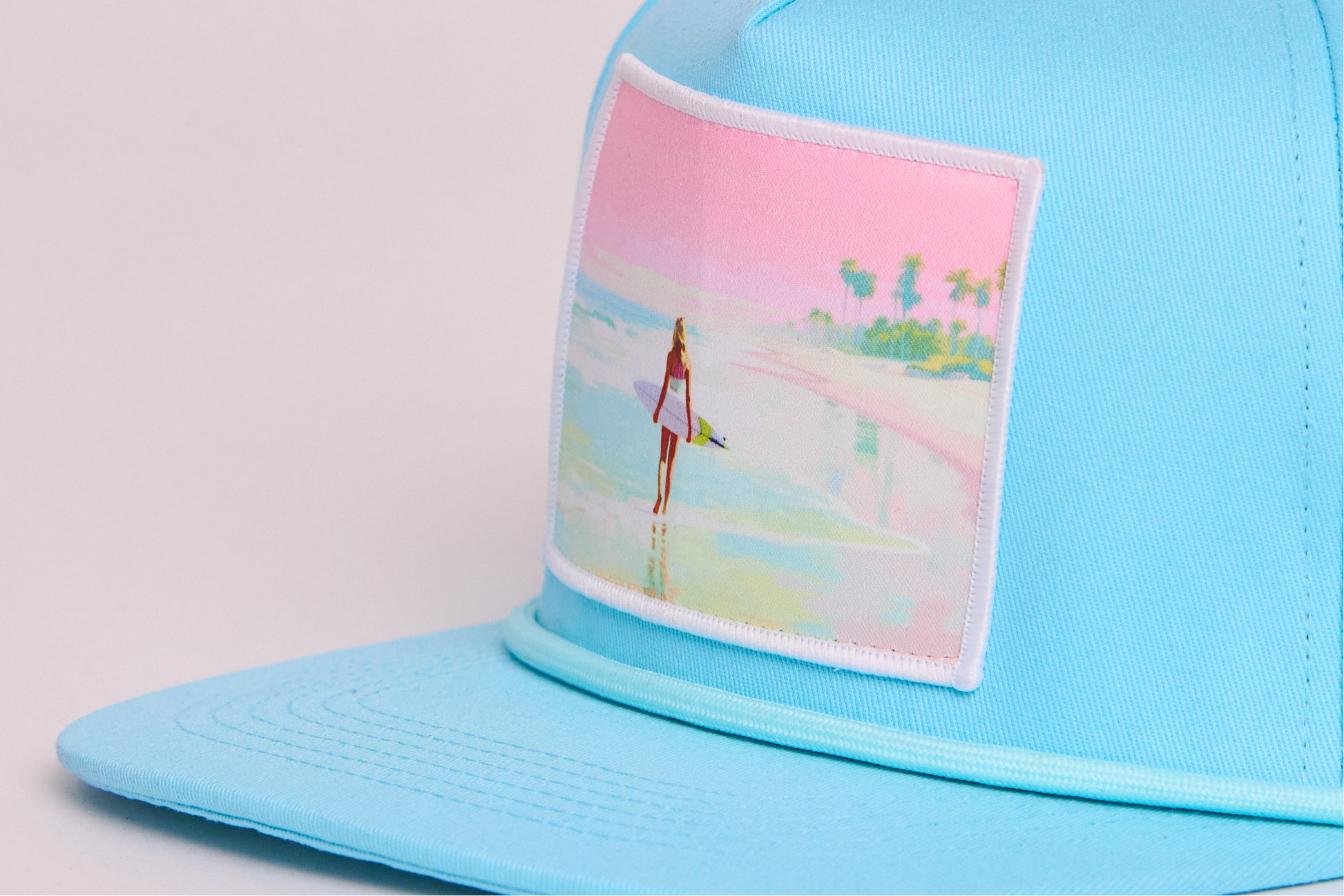 What could be better than a serene walk along the beach at sunset? This surfer girl knows it's one of life's greatest pleasures. Every hat has two secret pockets on the inside, and it's a snapback, for size adjustability.