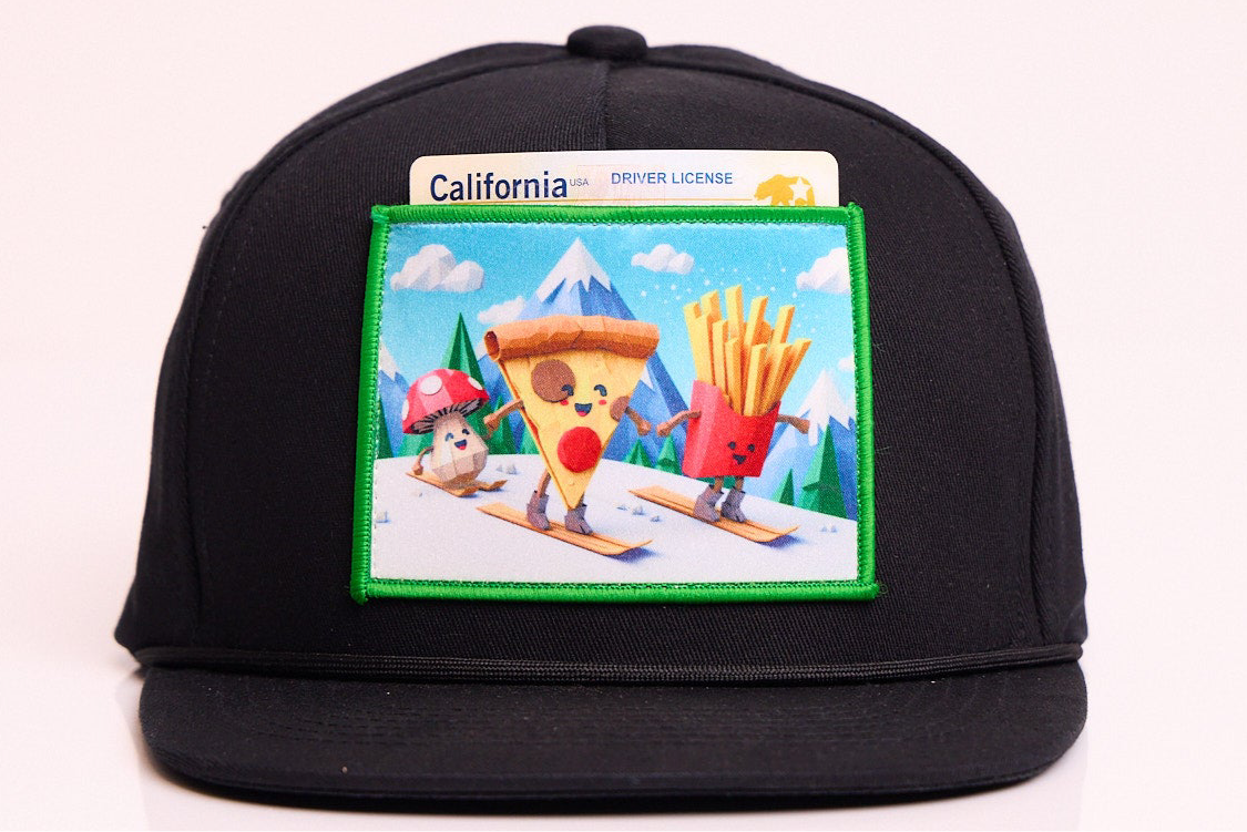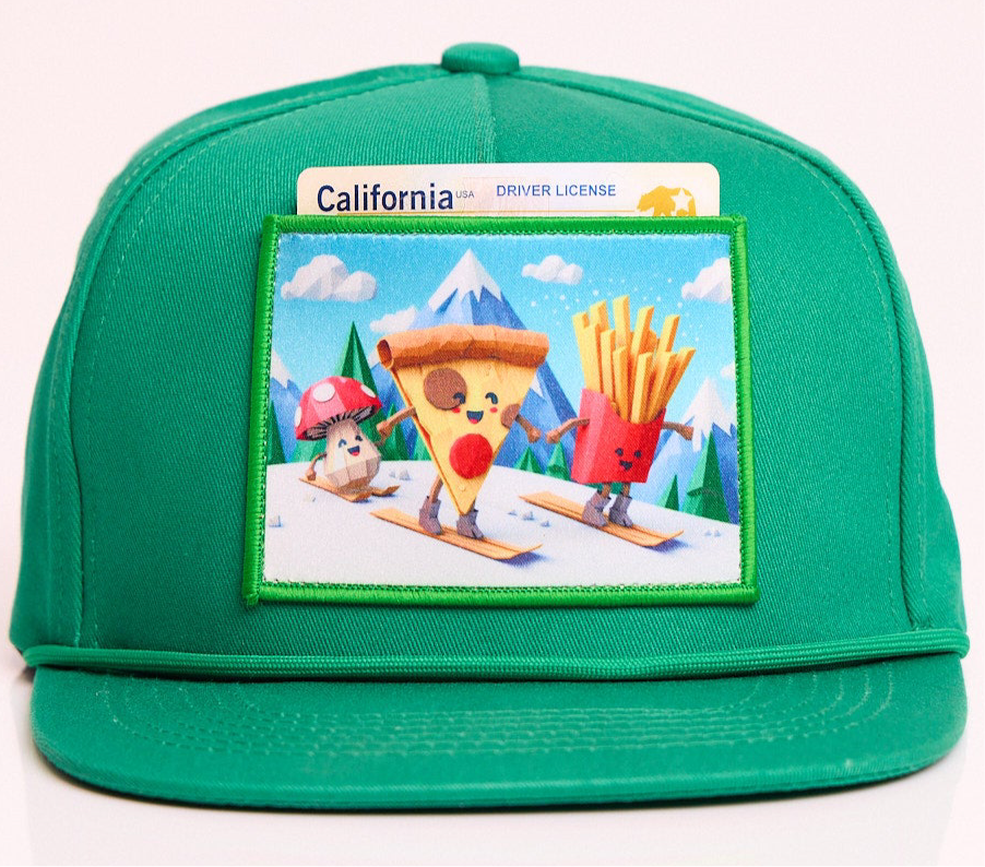 Who didn't learn to ski with the iconic Pizza & French fries methodology?Β This practical lesson comes to life with this playful twist on the classic, featuring a baby mushroom on hand. Designed for adventures big and small, it comes with three hidden interior pockets to safely store your cards, ID, or cash.