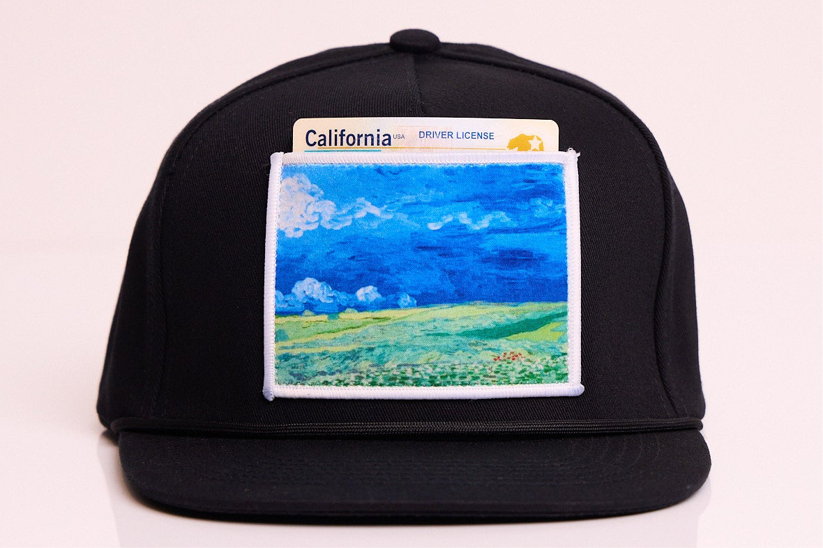 Channel the timeless beauty of Van Gogh with the INFILTRATOR Van Gogh Stealth Cap, available in both a vibrant green and sleek black option. Featuring a detailed patch inspired by Van Gogh’s iconic Wheat field painting, this cap combines classic art with modern functionality. Behind the patch, you’ll find a hidden pocket perfect for stashing cards, cash, or small essentials, with three additional discreet pockets on the inside for added storage. Whether you're making a bold statement with the green version or keeping things classic with the black, this cap delivers the perfect blend of style, art, and stealth.