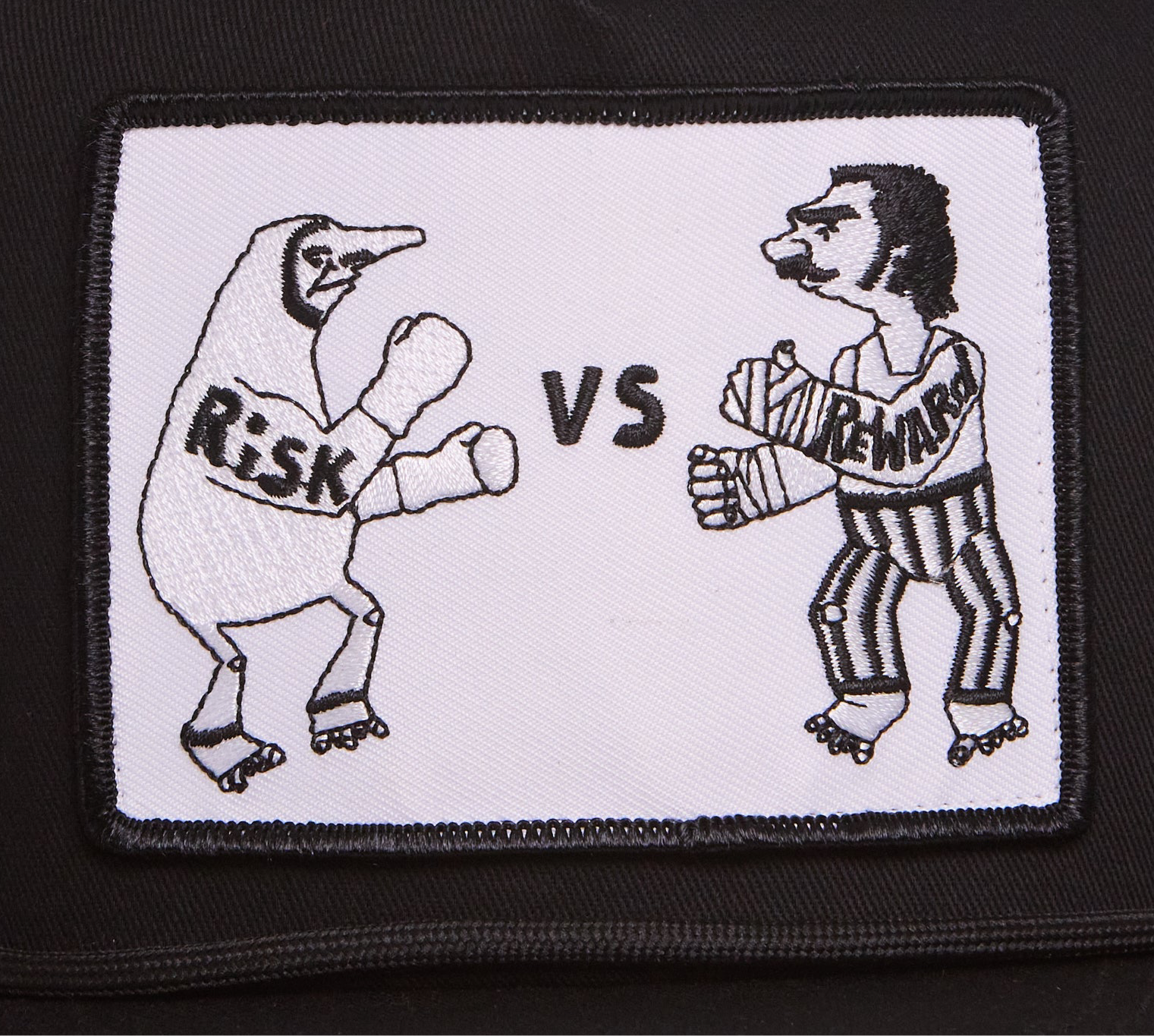 Make a bold statement with our thought-provoking INFILTRATOR Risk vs Reward Snapback Hat, available in sleek black and crisp white. This limited edition accessory showcases a witty cartoon illustration of two characters embodying the concept of risk and reward. The unique design not only serves as a conversation starter but also adds a touch of street-smart fashion to your wardrobe.